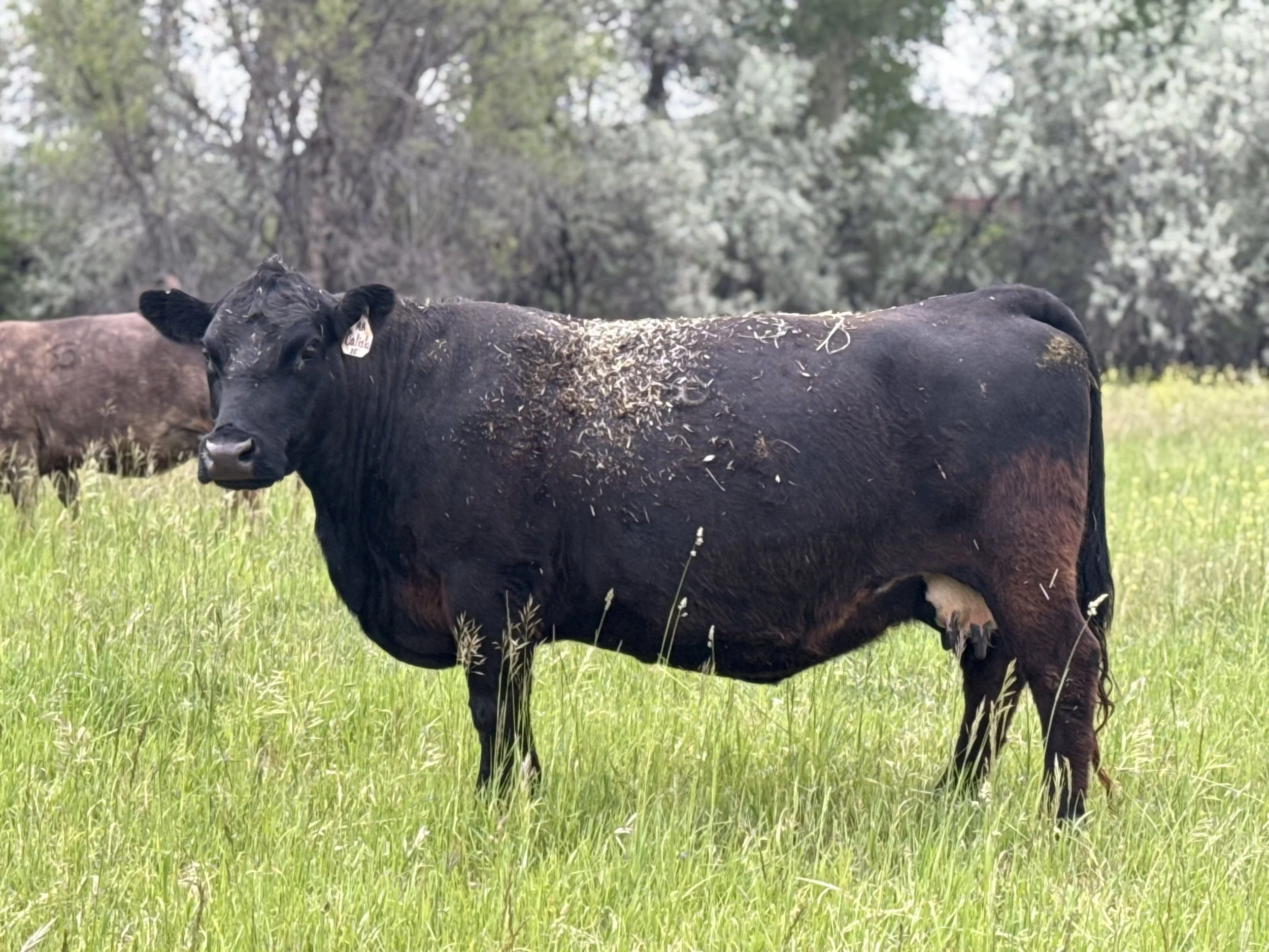 Calista is a matriarch female we purchased in 2024 along with a daughter and 2 grand-daughters from the well known Rockin R Ranch after pursuing her and her line of females for several years. We are very excited to finally incorporate her into our embryo donor program. This cow has never missed a beat and has calved every single year since she was 2 years old within 3 weeks of herself every year. At nearly 11 years old she has near perfect feet and udder as well as excellent udder attachment and teet size/placement. She is a cow we have an incredibly hard time faulting in a powerful moderate framed package. She is as tall as she is wide and has the length and depth we all want to see in our females. In Fall 2025 she weaned off our heaviest heifer calf of the year off mountain pasture alone and bred back via AI to calve with the Top 10% of the herd.